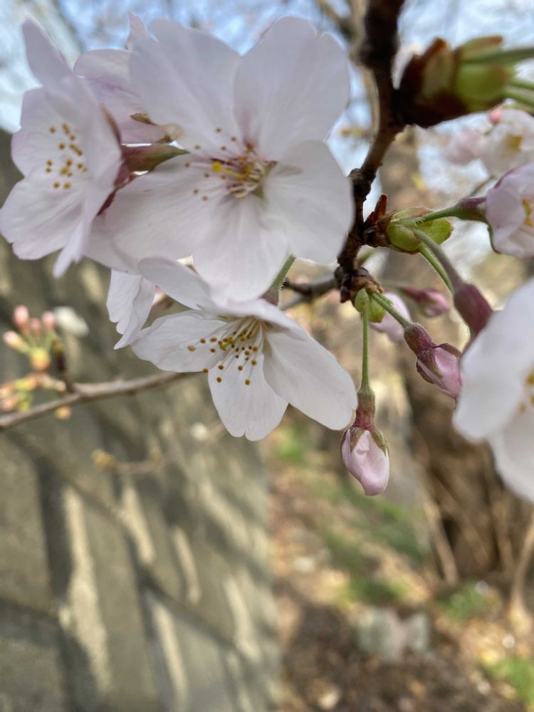 ご近所のバス停近くの桜がついに咲きはじめました🌸