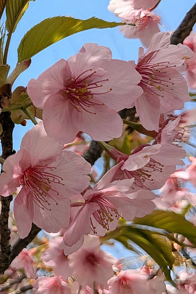 陽を浴びた河津桜たちのお顔がキラキラ✨