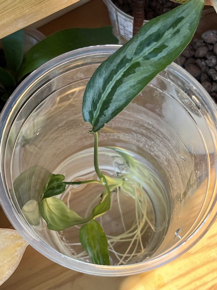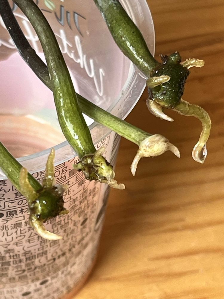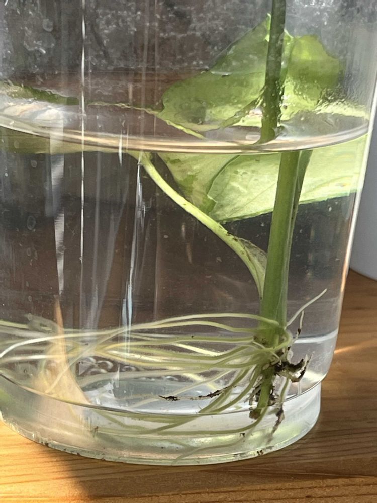 気根や株分けで根が付いた挿し穂なら水替えしたほうが良いと思いますが、切っただけの挿し穂だと切り口周辺に形成されたカルスが重要な役割を持っているので発根するまでは水替えは極力少なくしています🤔