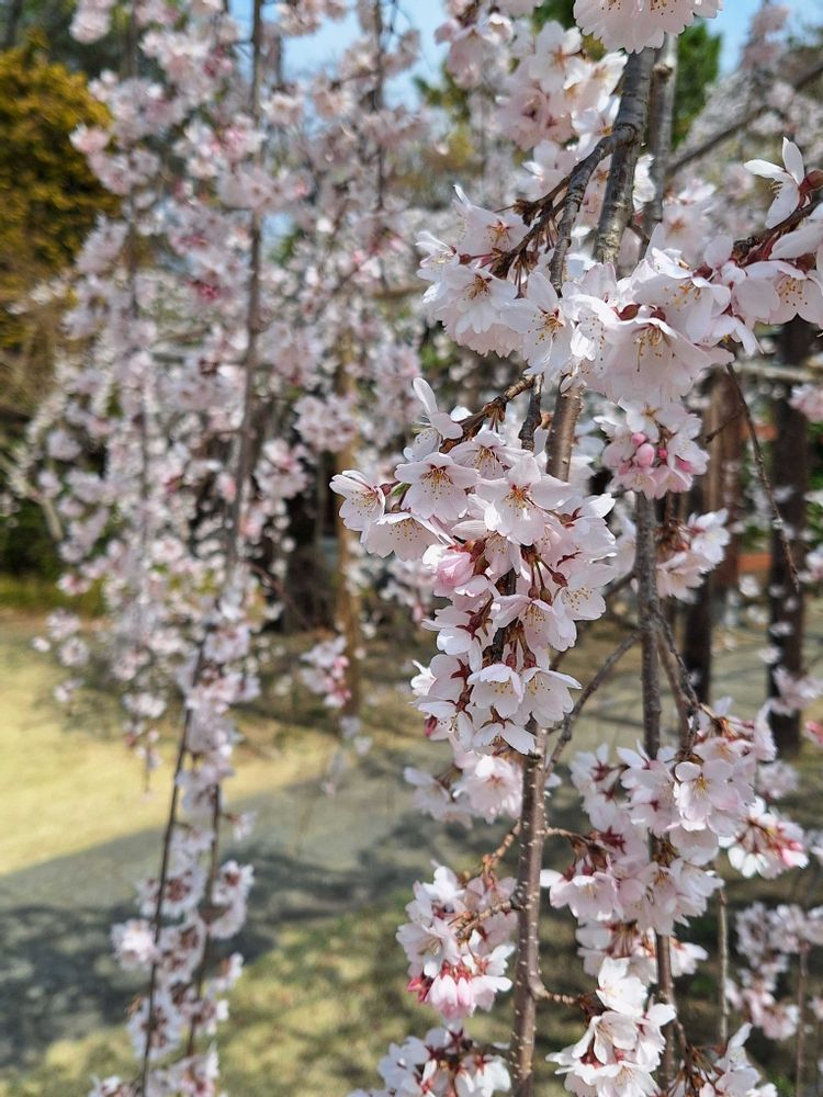 枝垂れ桜の他に、濃いピンクの桜や白木蓮、山茱萸(サンシュユ)も綺麗に咲いていました❗😃✨