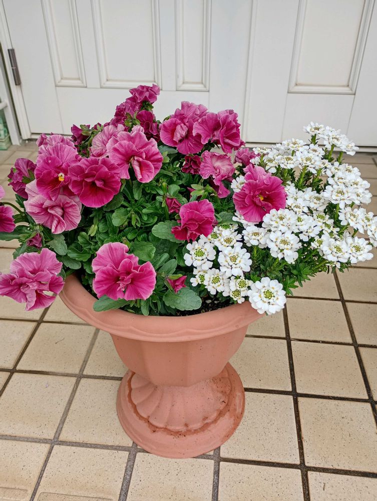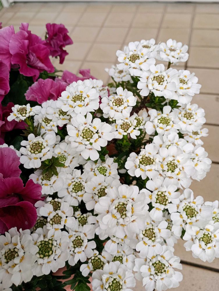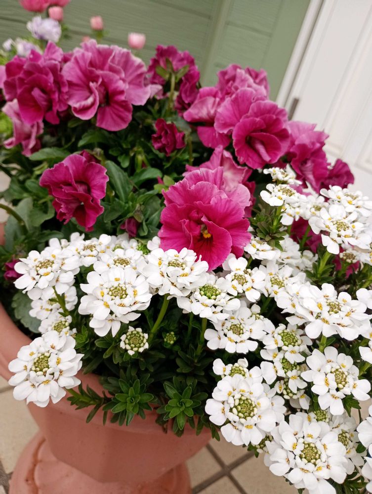 イベリスとパンジー「マリーリーン」の寄せ植えが満開になりました😻💓