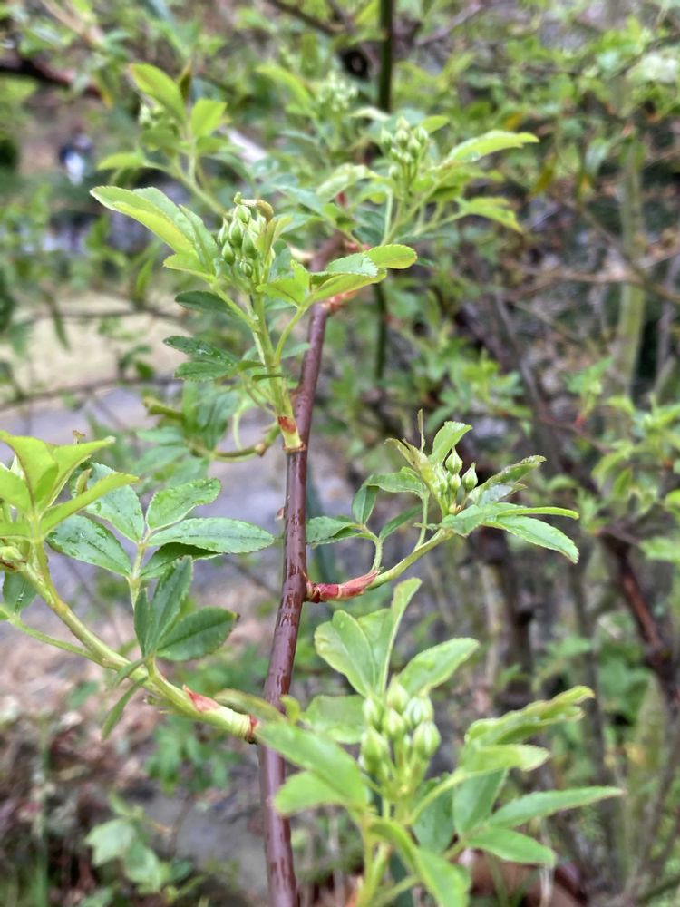 小さな庭,ブルーベリーの花芽,黄モッコウバラの蕾の投稿画像