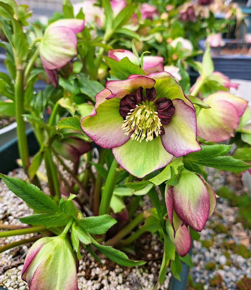 ③④⑤多分我が家のクリスマスローズの中で一番花数が多いのではないかと思う「ダブルアプリコット」