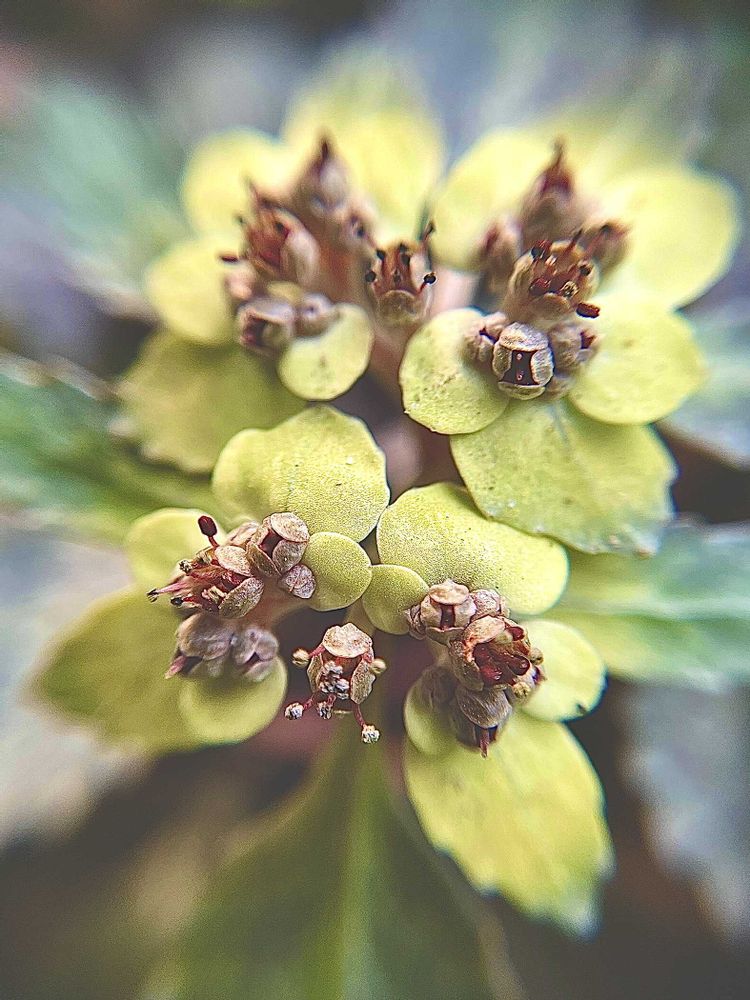 黄色く見える葉っぱは、包葉と言います。地味系なので、🪰🐝虫達に花粉を付けて欲しくて、目印なのだと思いますよ⁈