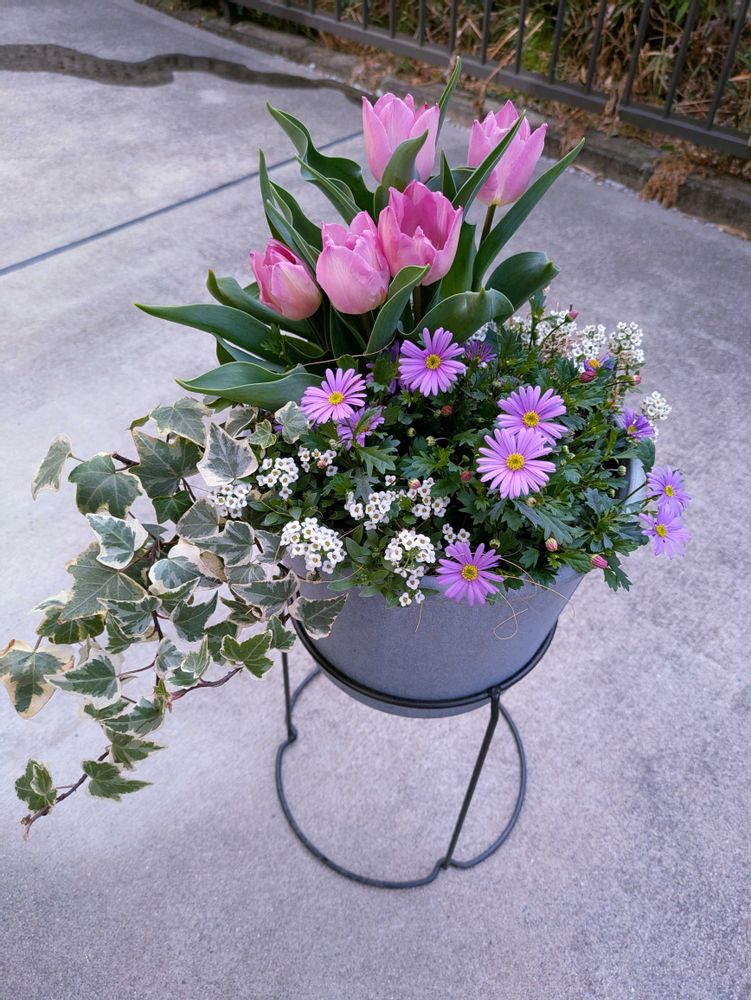 pic.②…昨年12月に作った寄せ植え。チューリップの球根を仕込んでおいたのが、見事に咲いてくれました🌷🌷🌷