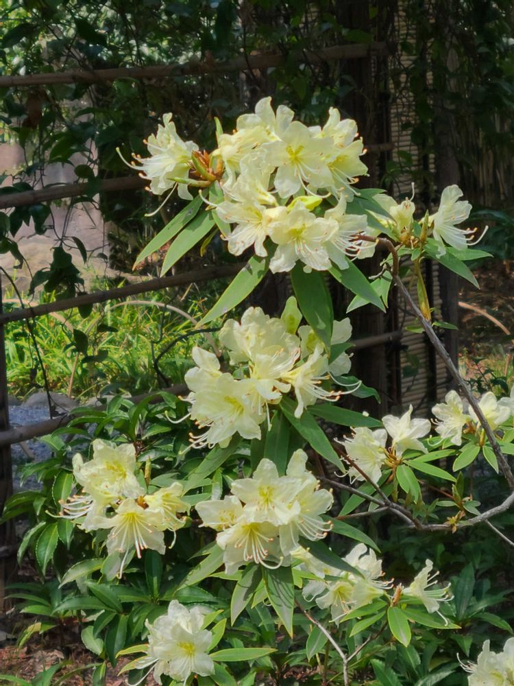 緑がかった黄色の花上品で美しい「ヒカゲツツジ」初見😱😍 雄蕊10本花とほぼ同じ長さ、雌しべは雄蕊より長いです😲ツツジの中では珍しいのでは💖😊 ツツジの周りにはゼンマイがニョキニョキと有りました。