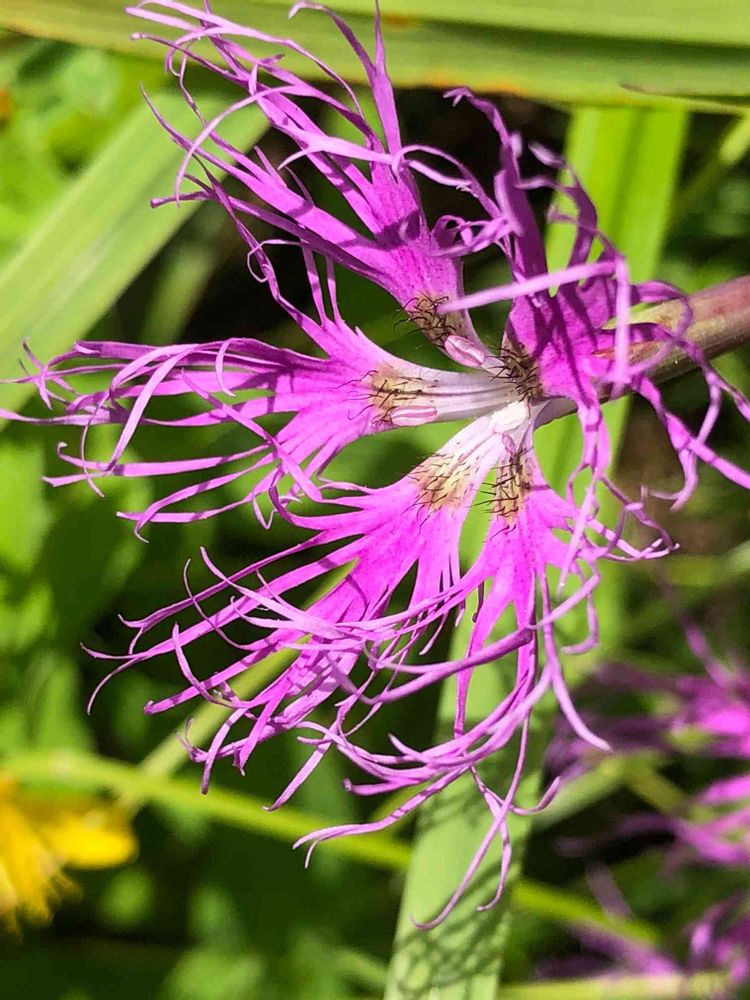 タカネナデシコはカワラナデシコよりも花びらが糸状でしょ。見分けるポイントです。あとは、咲いている場所です。タカネナデシコは2000m級の岩稜帯で、乾いたところですからね。