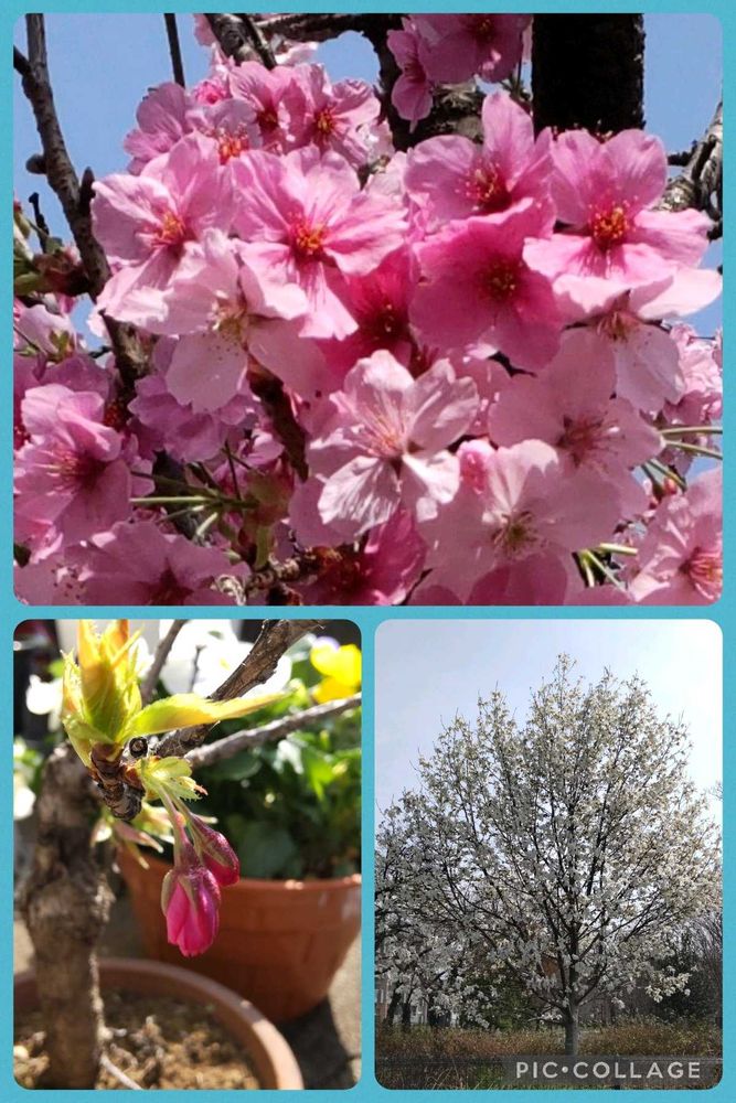 下の鉢植えは、我が家の名無しの桜。だんだん花数が少なくなってきましたが、今年はまだ蕾です。近所の白モクレン。見事だったので、一緒にパシャリ🥰✌️