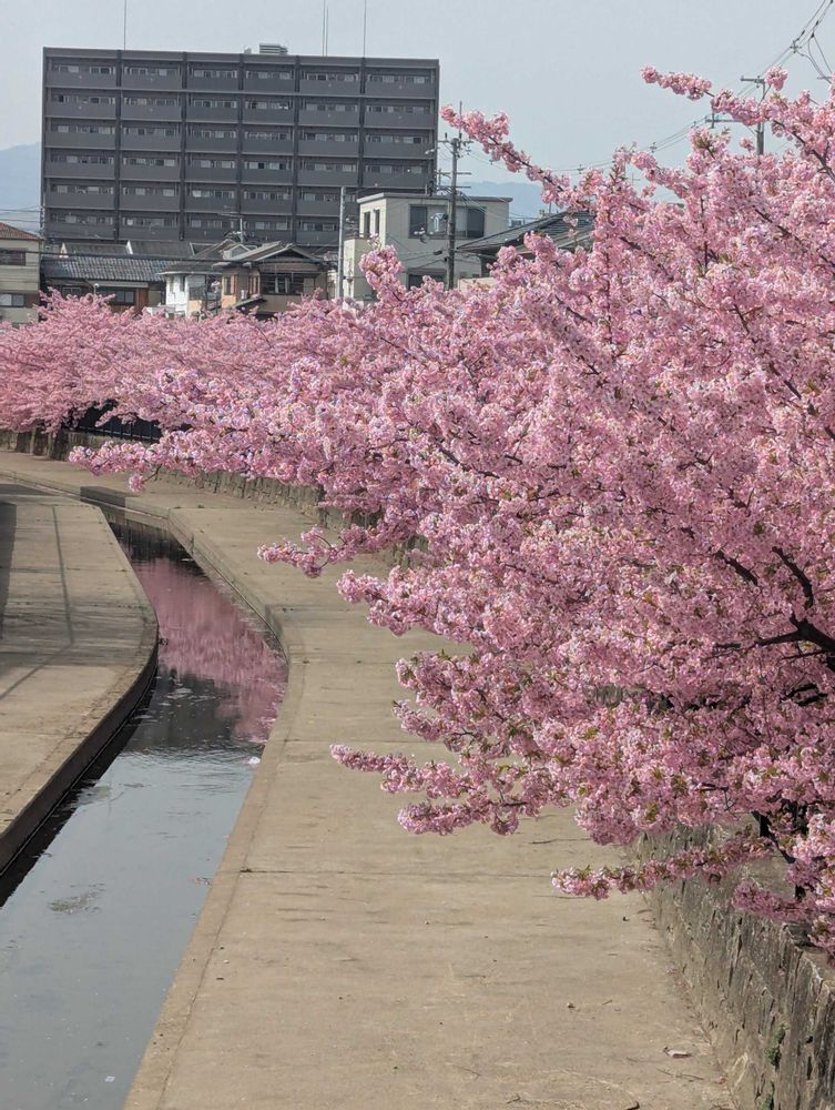 ⑤2日前に行ってきた伏見区淀の淀水路に咲く河津桜🌸も見頃でした。例年よりかなり遅くの開花でした。