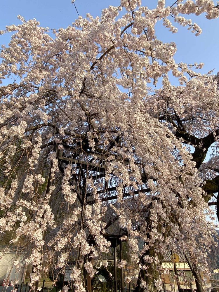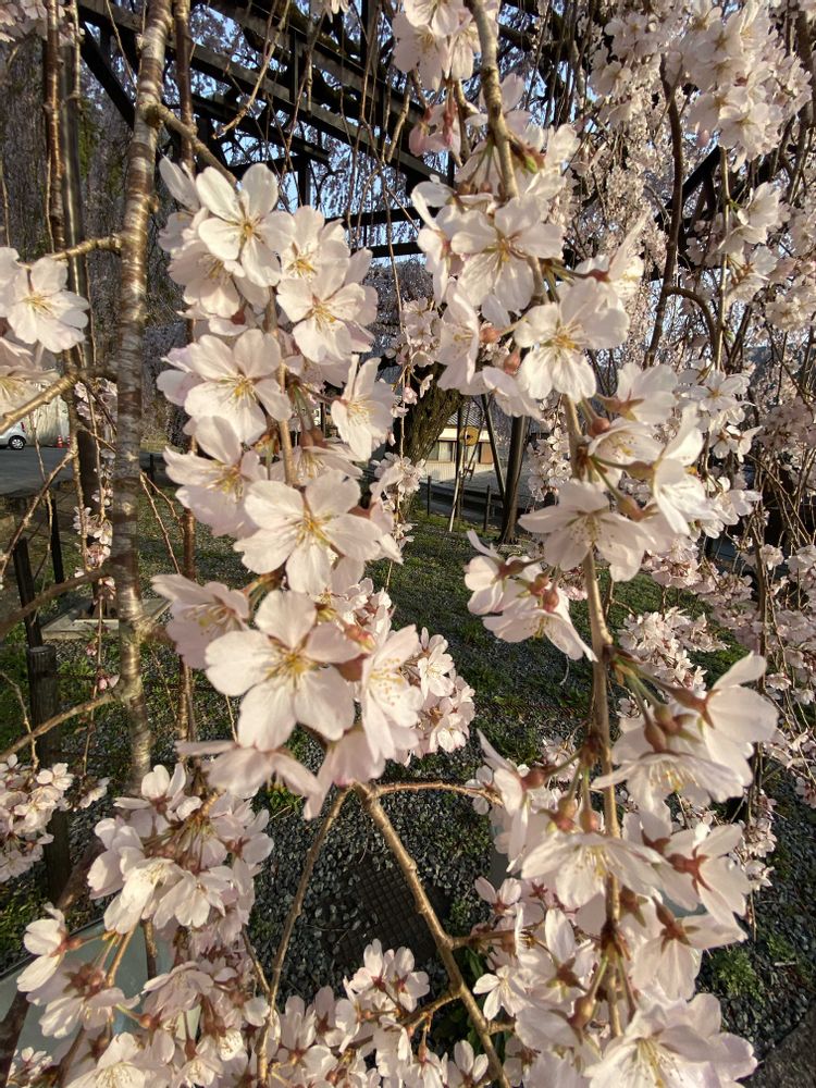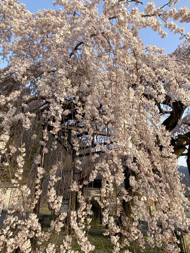樹齢150年の町の天然記念物の枝垂れ桜🌸が満開と聞き、昨日の仕事帰りに寄り道しました😊