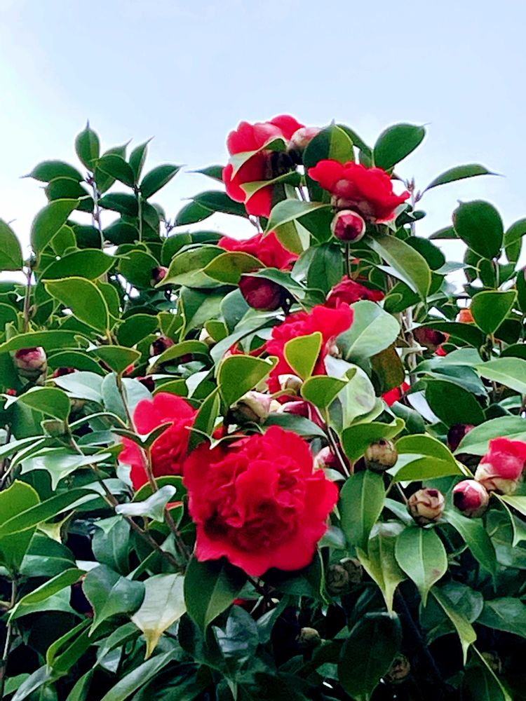 m&oさんの買い物帰りに,通り道のお宅の樹木,椿の花と鳶の投稿画像