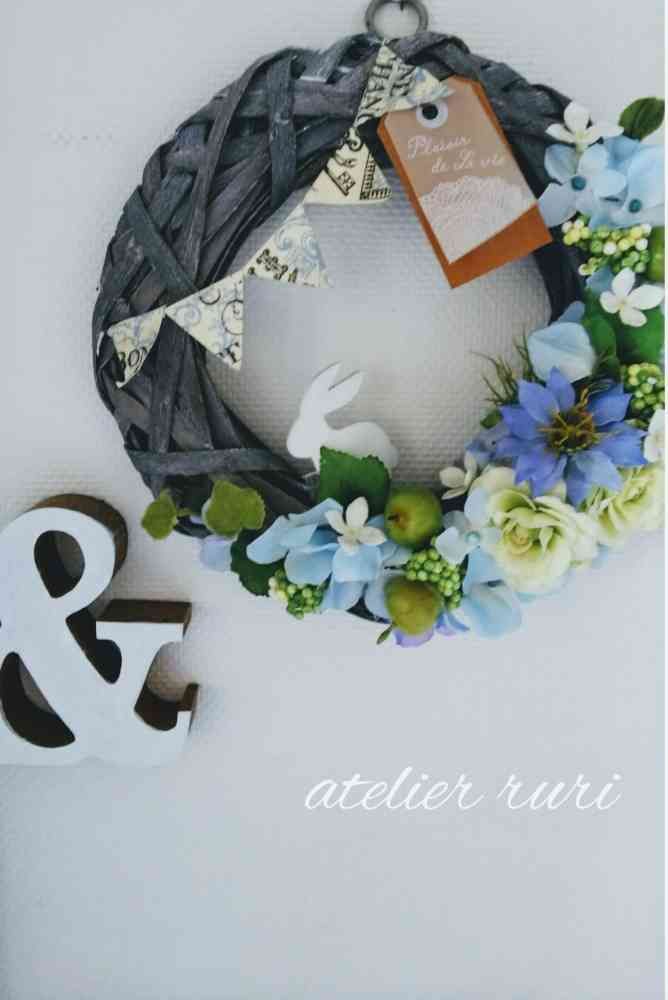 大好きなニゲラとウサギを中心に作ったリースです~😃✌️