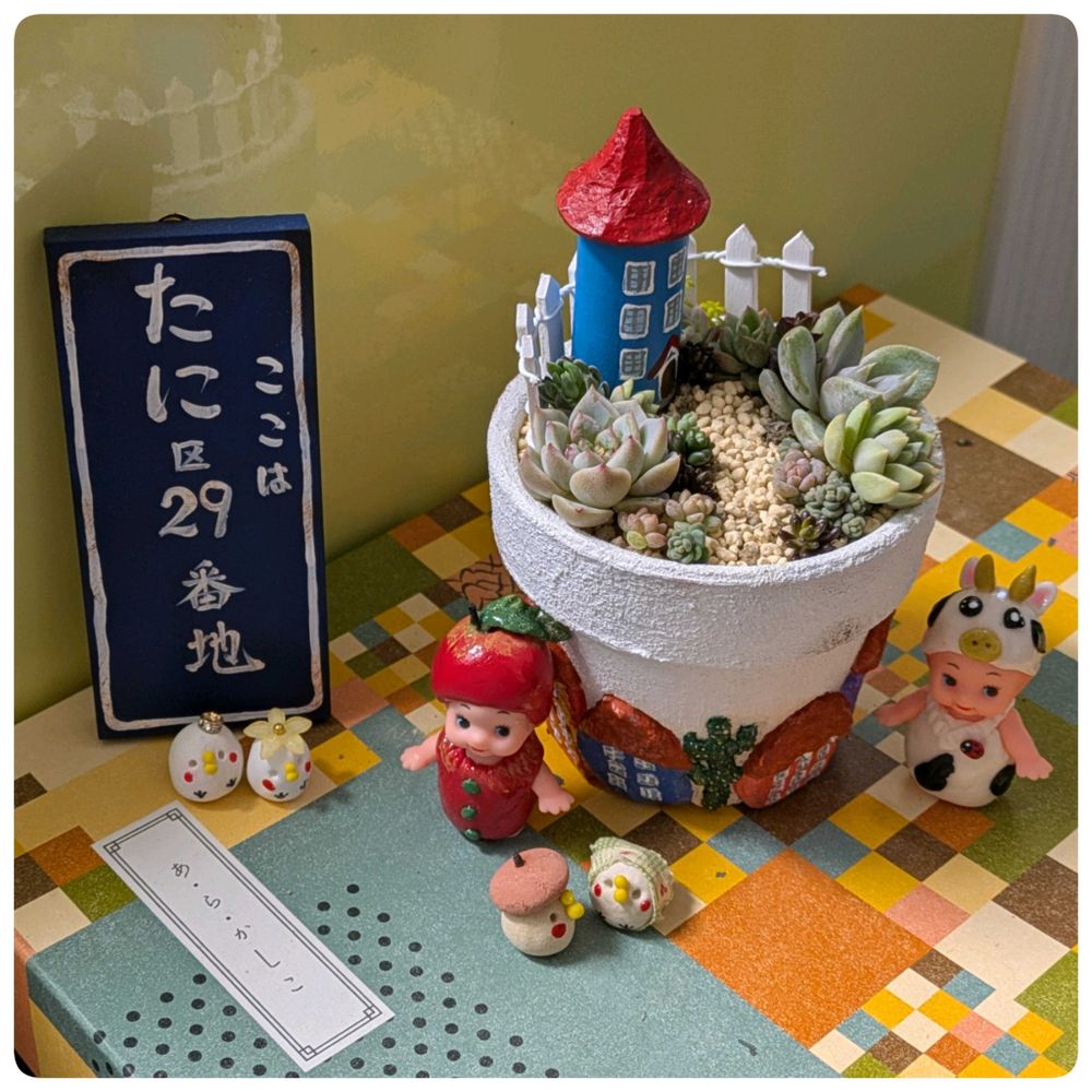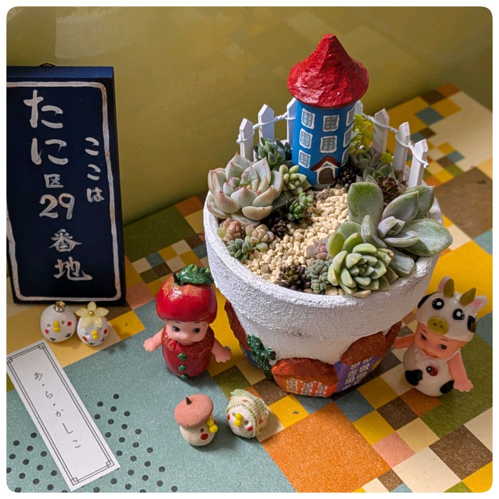 かまぼこ板と一緒に可愛い鉢も届いて、あっこれは絶対45さんから頂いたムーミンハウスとコラボさせたい〜〜♥と思っていて、やっとこできましたー✨️✨️