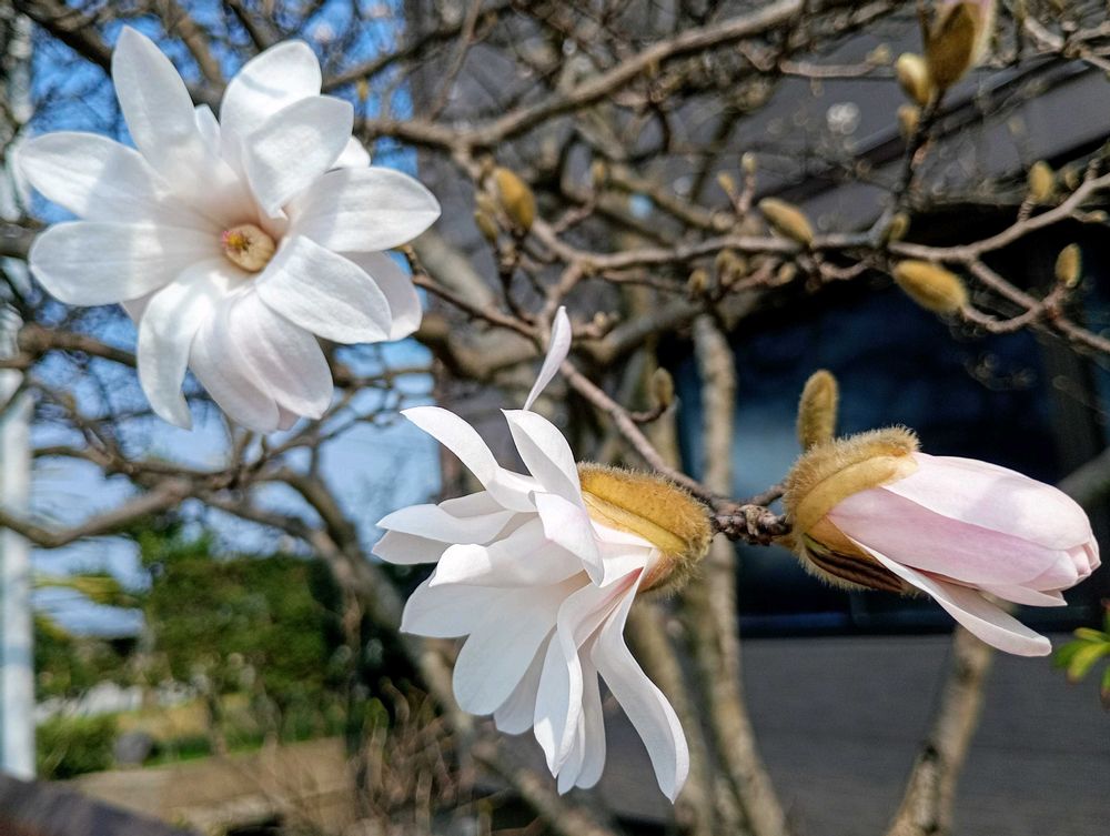やっと、いつも気にかけてた🚗👀📡シデコブシが 咲き始めだしました。