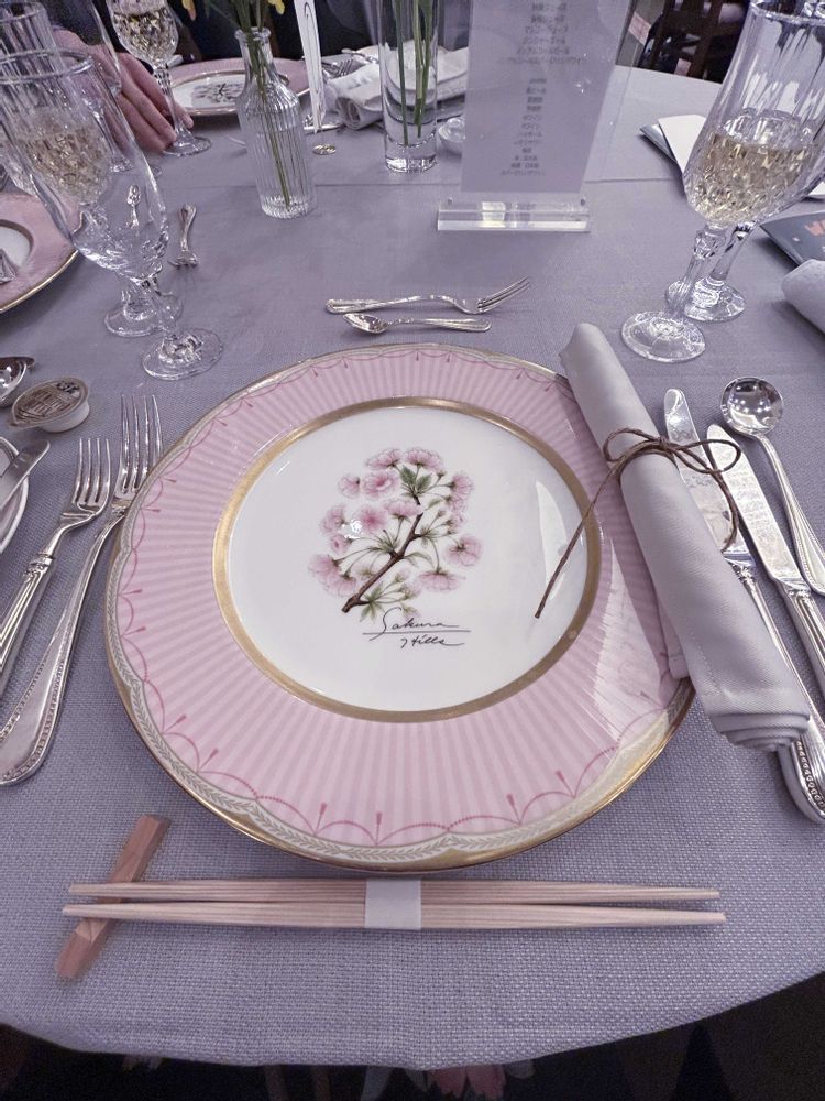 披露宴でゲストテーブルの上に最初に置かれているお皿を「ショープレート」と呼びます。ゲストがお席についてまず目に入る「ショープレート」は、2人のおもてなしを表現する重要なアイテムで、コーディネートの質をグッと引き上げてくれます。もちろんデザインは『サクラ🌸』