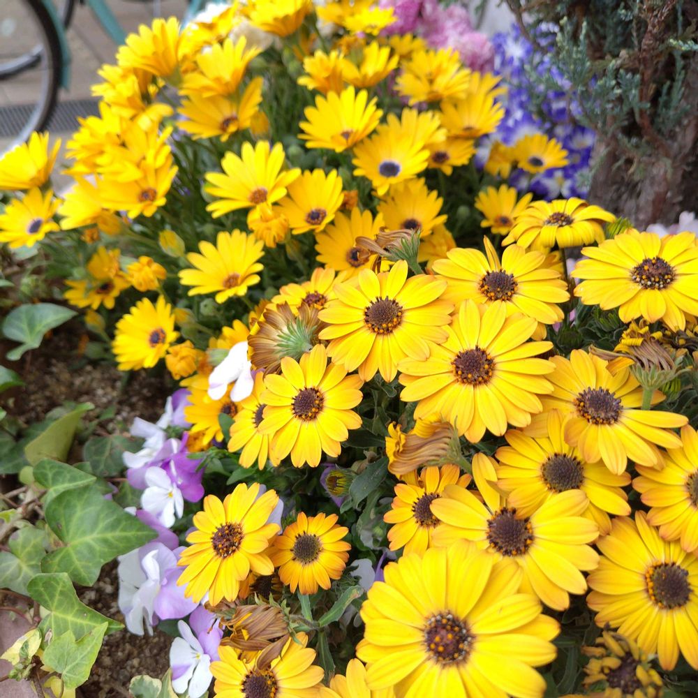 デパートの花壇、見応えあるわね💛🧡💜🩵