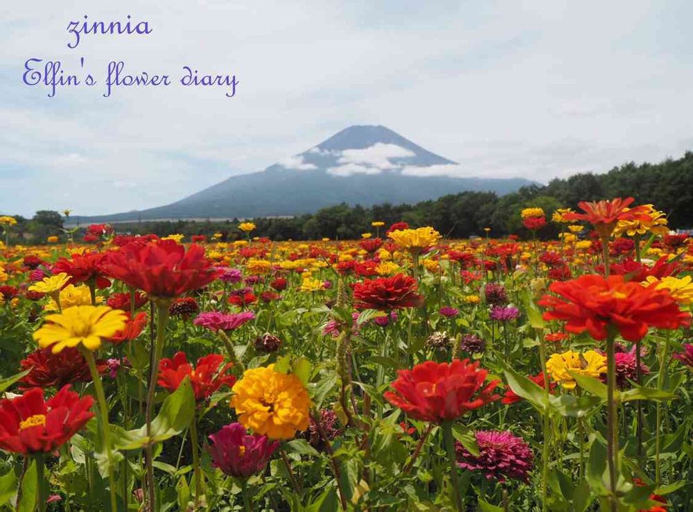 今日のお花は、昨日行った花の都公園の外のジニア畑のpicです。後ろに見えるのは、富士山です。