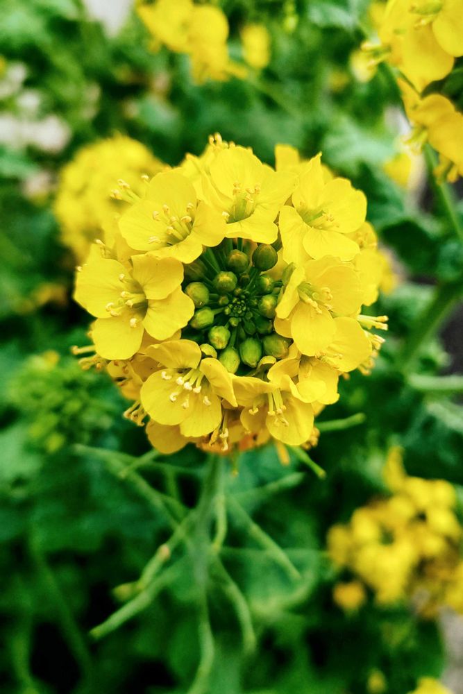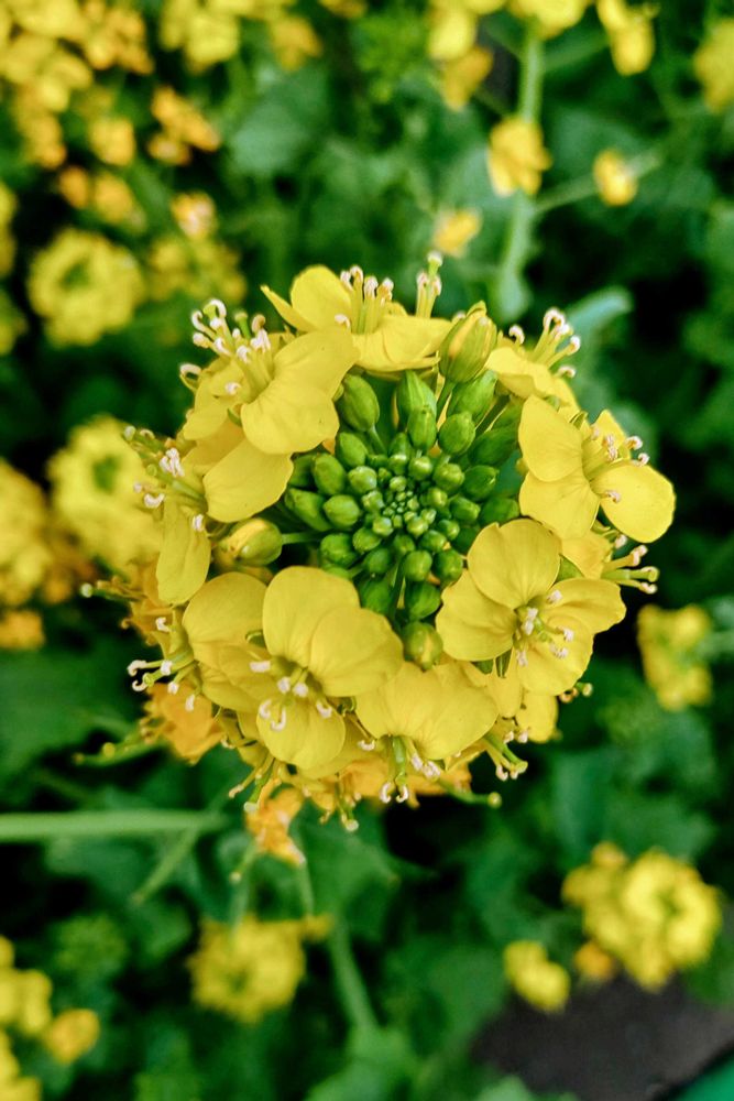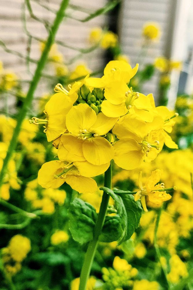 夕方、マンションの道に面した小さな庭にナノハナが沢山咲いていました。