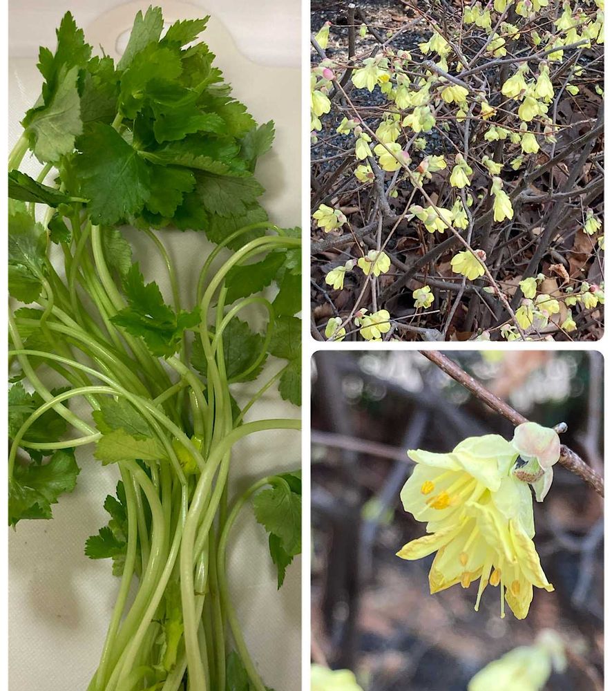 🌅今日のオッハーナ『ミツバ』スーパーマーケットで買いました🤣&ヒュウガミズキ🌼春春探検隊🧐