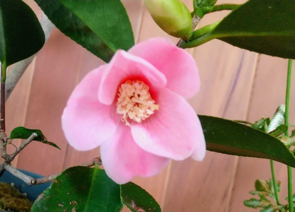 ボラの花壇に植えた椿が昨日やっと開きはじめてたの