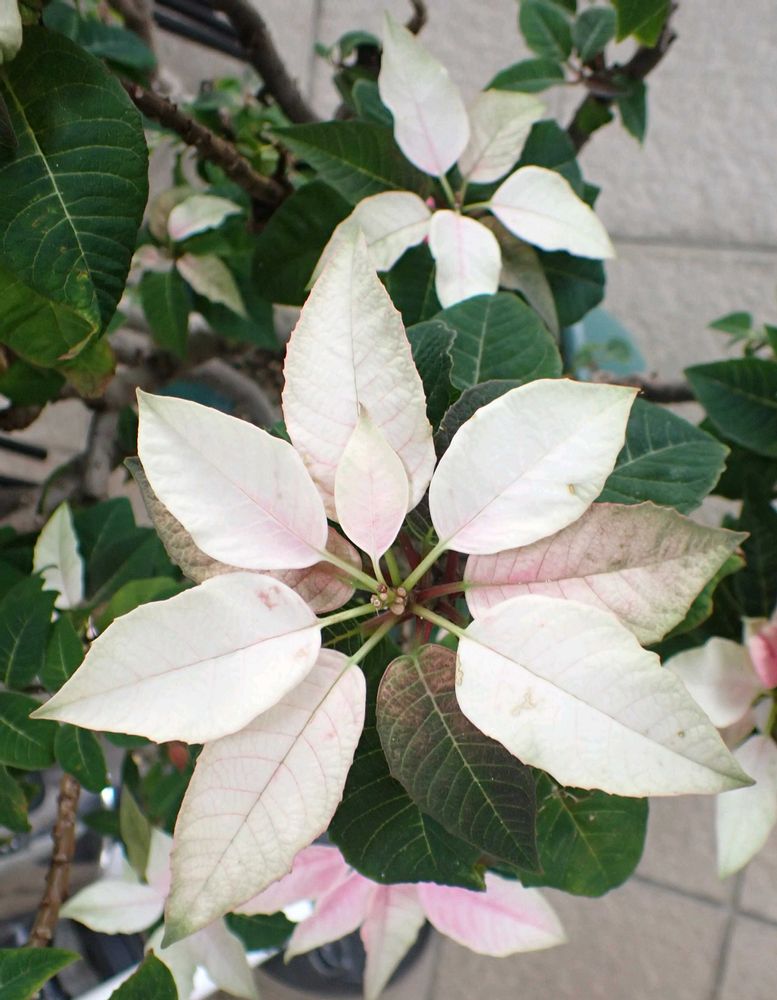 1) ポインセチア、開花