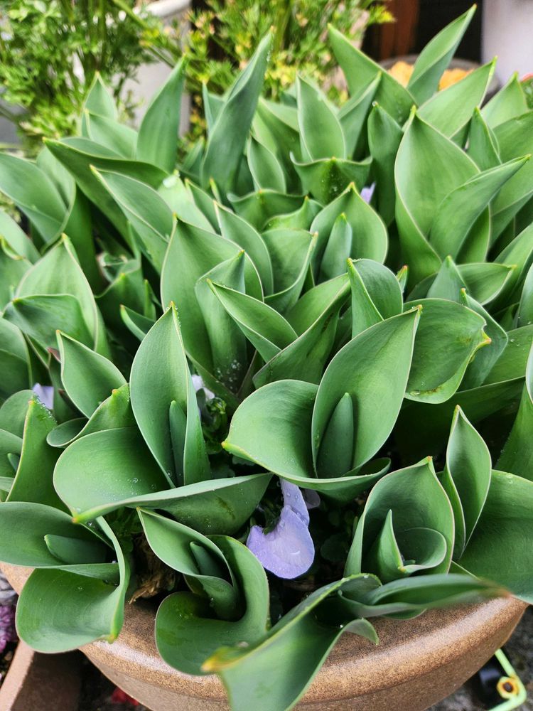 三枚目のうす紫のビオラは、葉っぱに埋もれました。(3/18の様子)