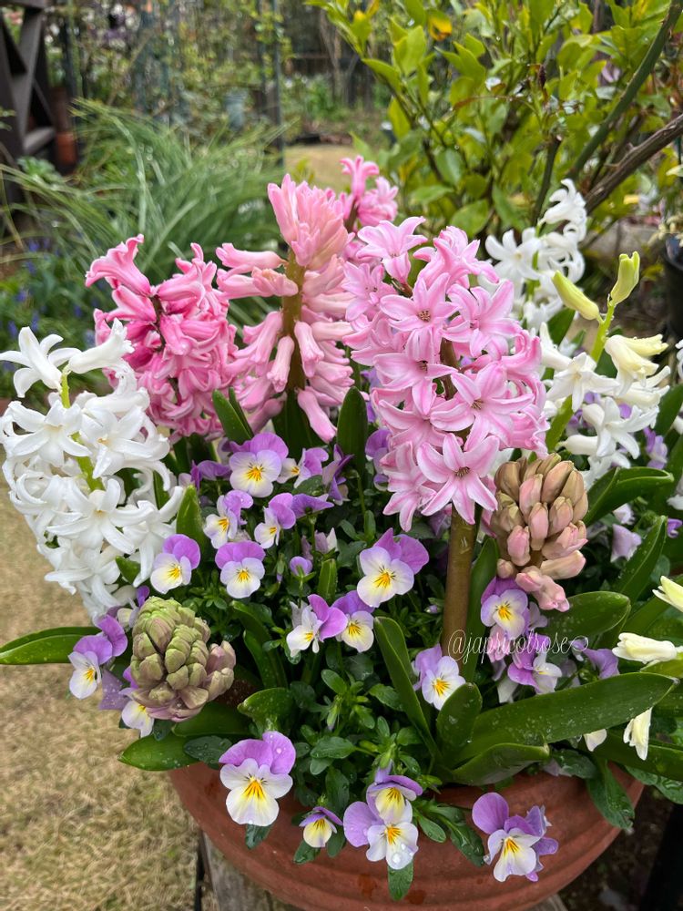 ②モリモリ過ぎたヒヤシンス🪻とビオラの寄せ植え✨