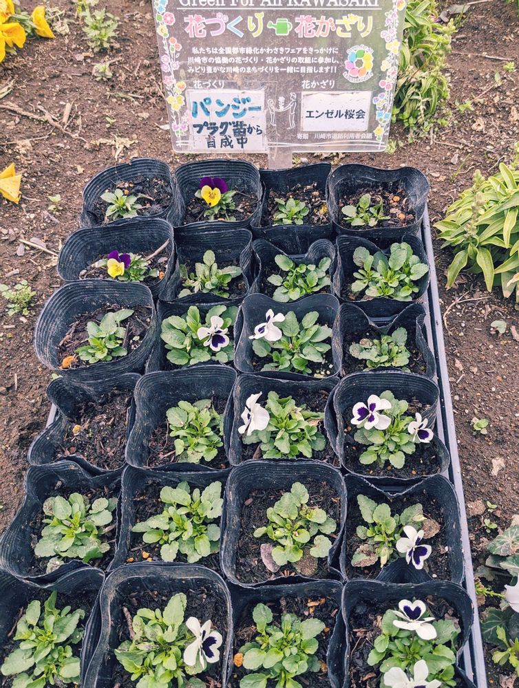 ⑤春の陽浴びて定植を待ってます🌿🤍💛💜🌿