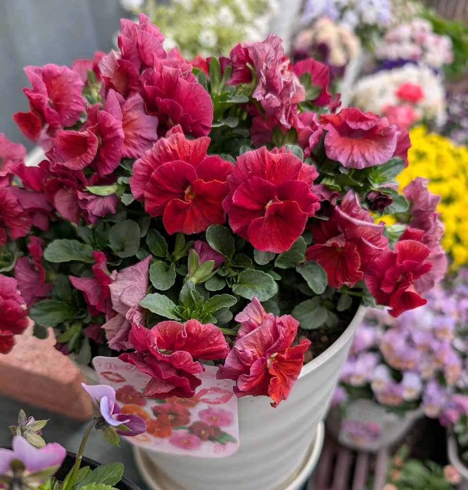 1年草を中心に鉢植え100鉢ぐらいを狭い庭でぎゅうぎゅうに育ててます。ペチュニア系、パンジービオラ系が好き。
