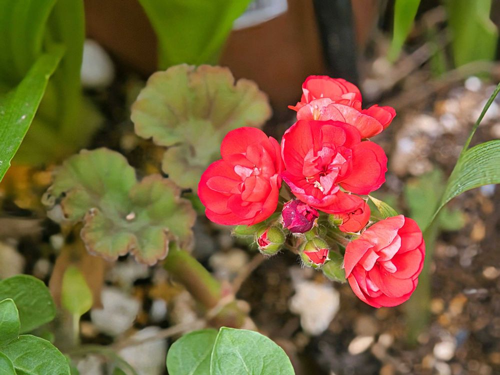 昨年花友フェスタで買ったチューリップ咲きゼラニウム、花壇に挿してたら冬越しして咲きました⋆.˚⊹⁺