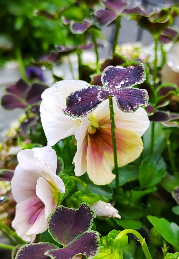 クローバー、グンと背を伸ばしビオラを追い越してます