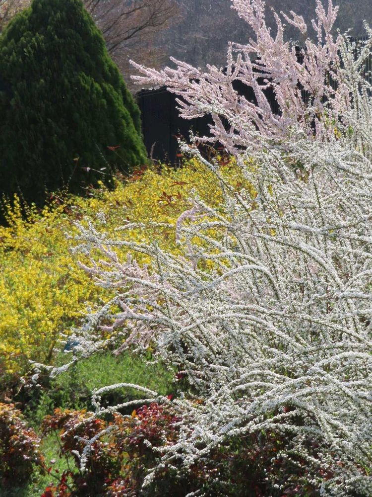 レンギョウとユキヤナギの黄色と白のコラボが素敵で、いつまでも見ていたい光景でした💛🤍