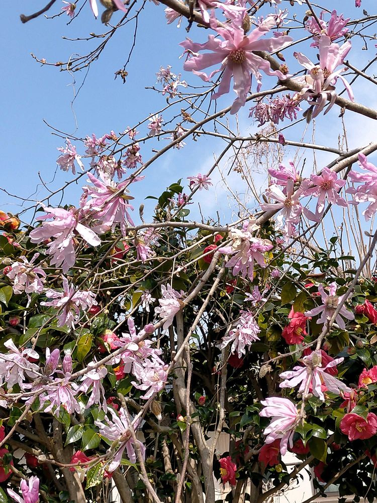 白木蓮に少し遅れてシデコブシのやさしいピンクの花びらが風に揺れてます🌸🍃