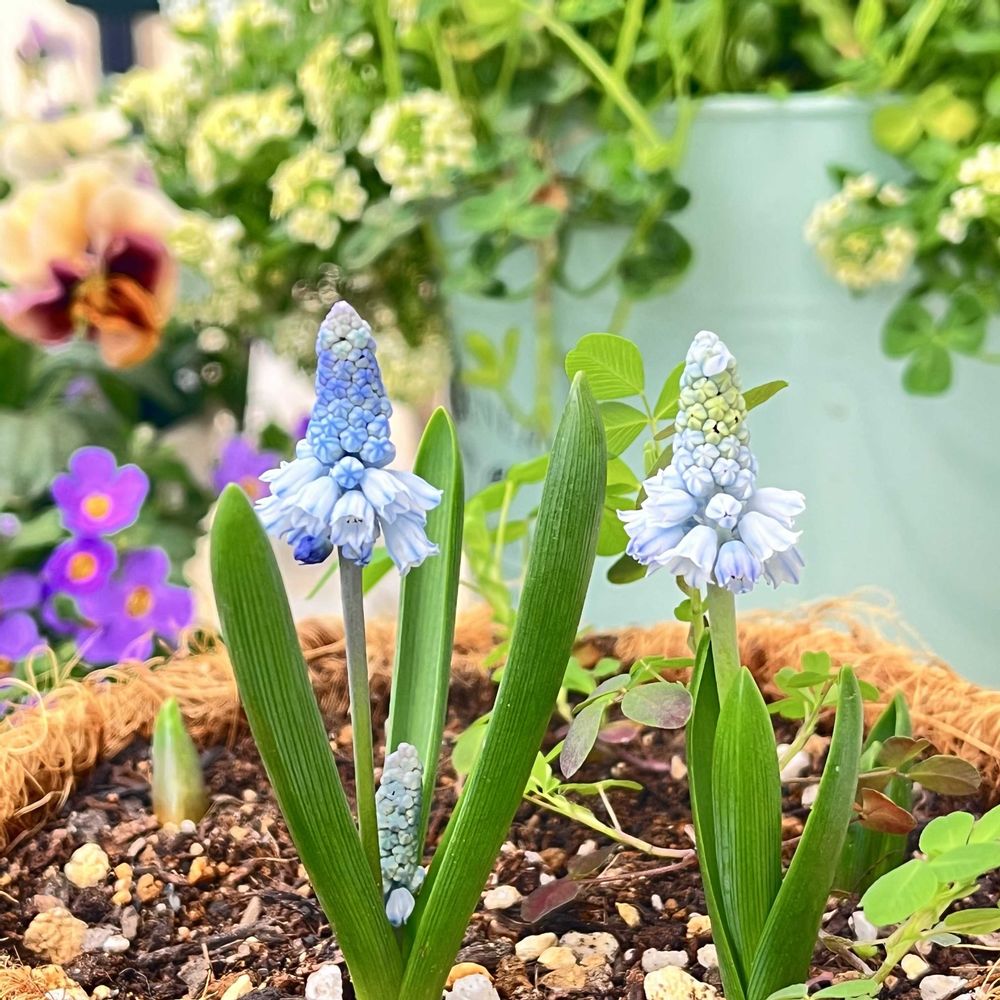 ムスカリさん、咲き始めの形が青色のドレスをまとったかのようでとても可愛い〜( •̤ᴗ•̤ )♡