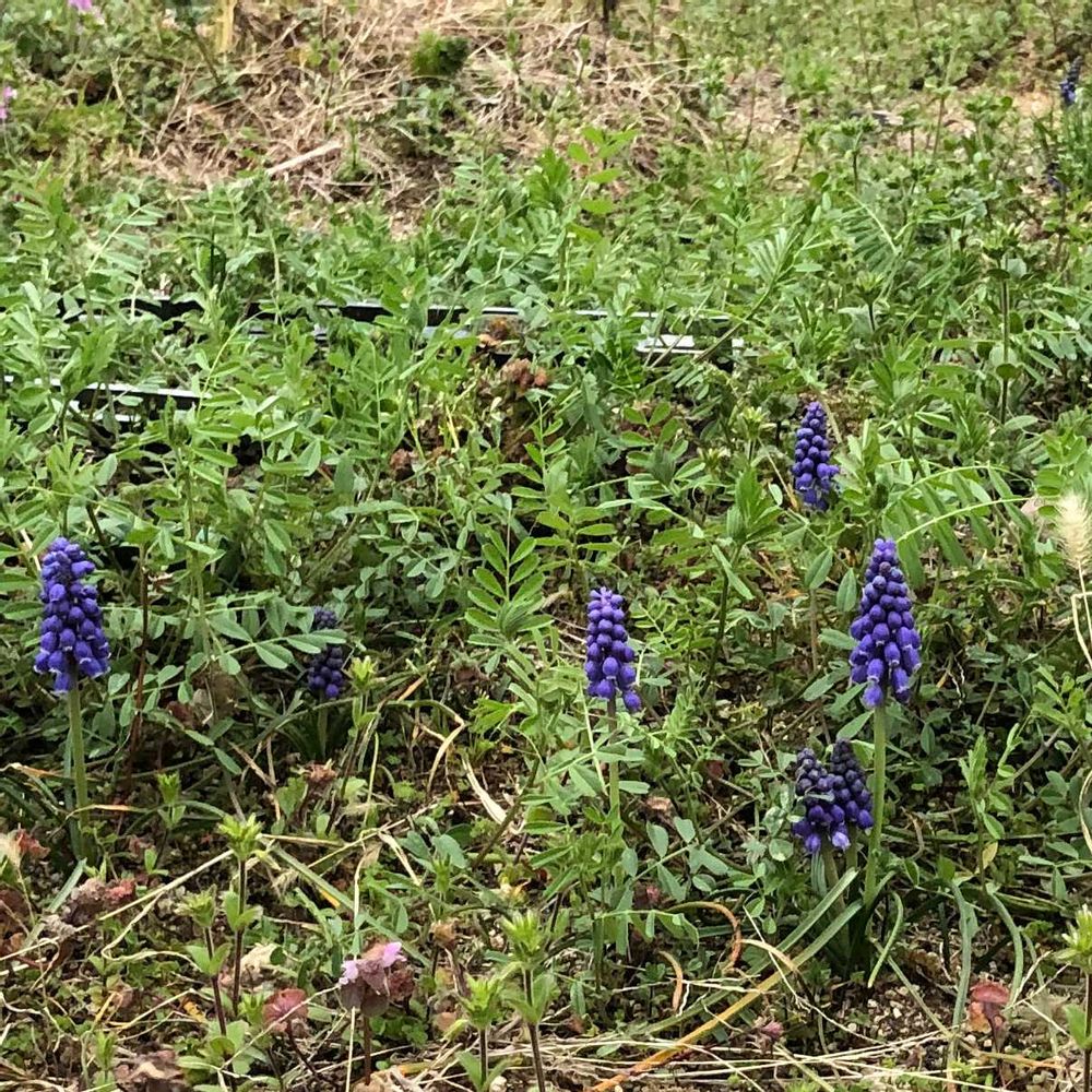 お出かけ先で、💜ヒヤシンス。💜ムスカリ"ꉂ😝💙💚こんにちは😊😊