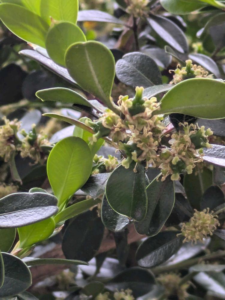 結構大きな葉でヘラ型。でも、モッコクの花は7月頃では?