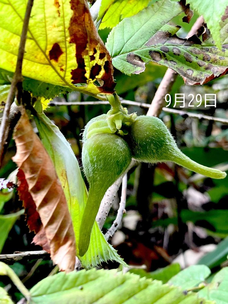昨年8月1日に長野でツノハシバミの果実初めて見て、形に驚きました。👀