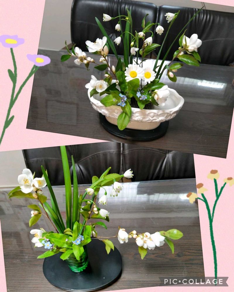 もう夕方ですね。肌寒い1日でした。風があり、庭のスノーフレークが倒れかかってたので、数本貰い、忘れな草、琉球椿(Iuchensis姫山茶花)、ノースポールも仲間に入れて花遊びしてみました🎶。