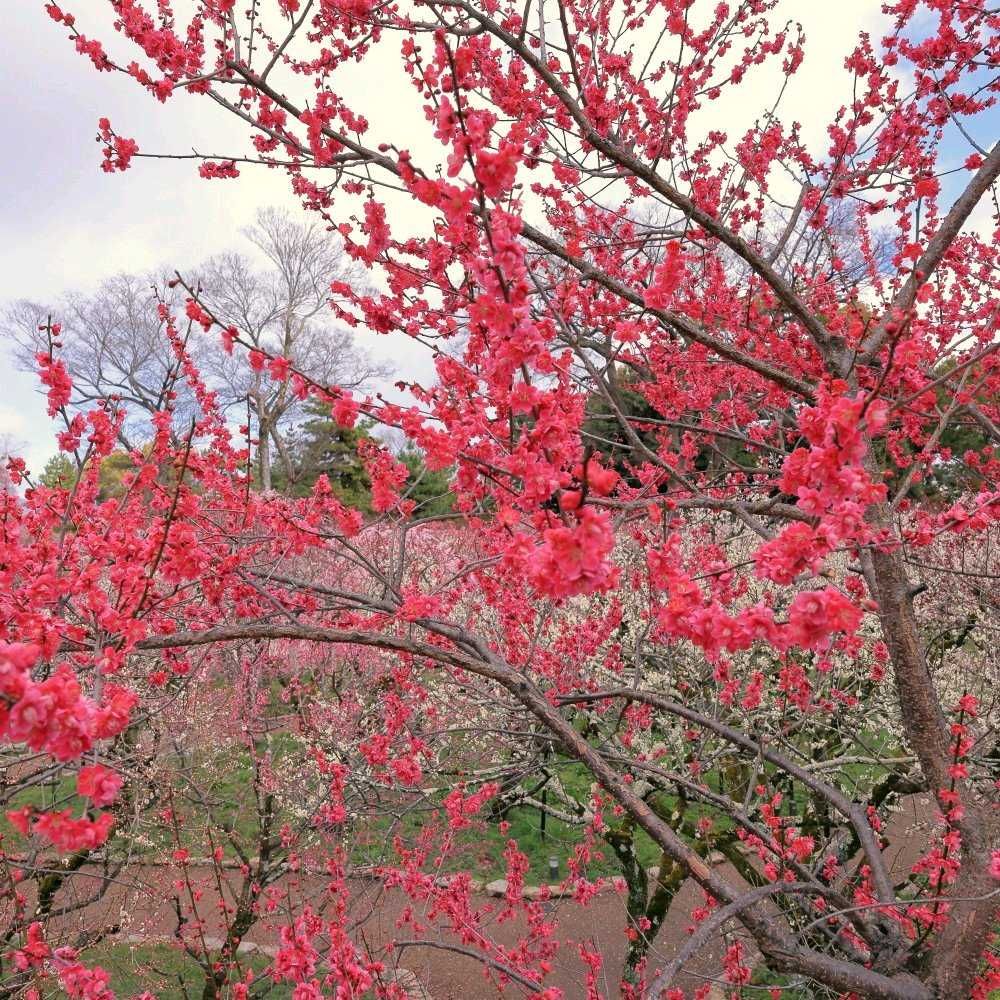 展望台から苑内全体を見渡すと、一面を色とりどりに咲き誇る梅は、とても美しいです🌸
