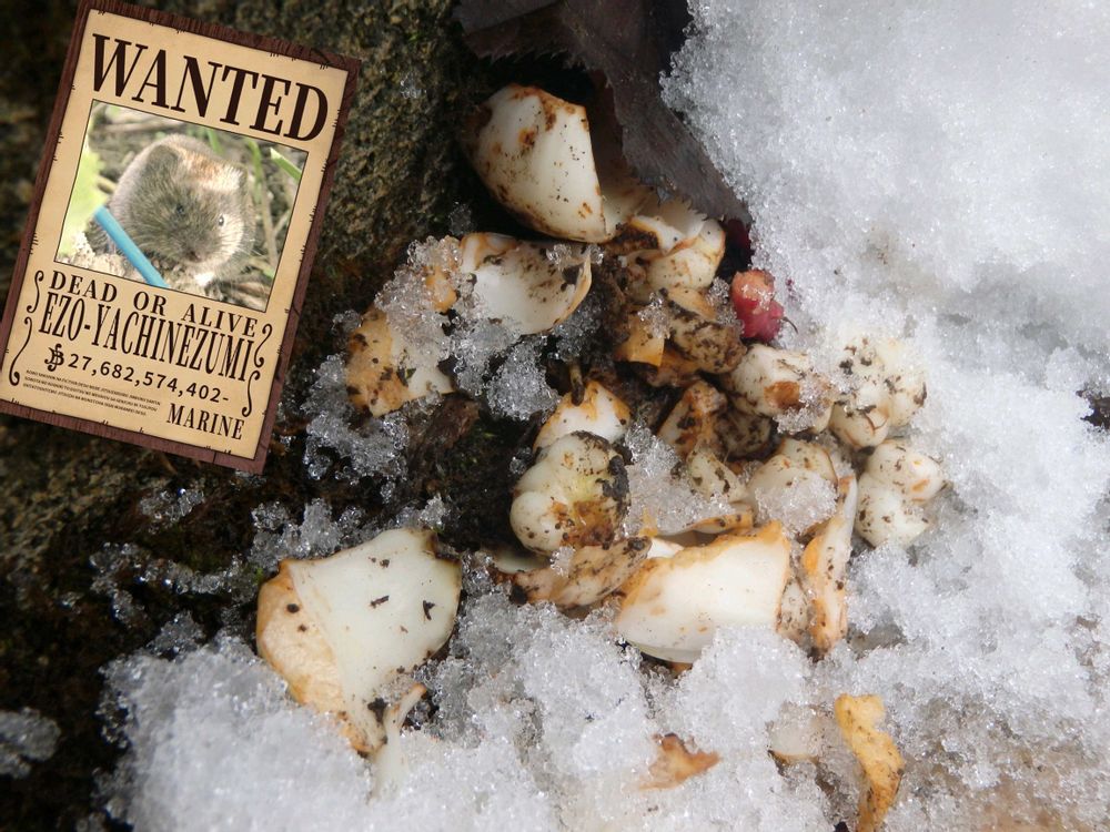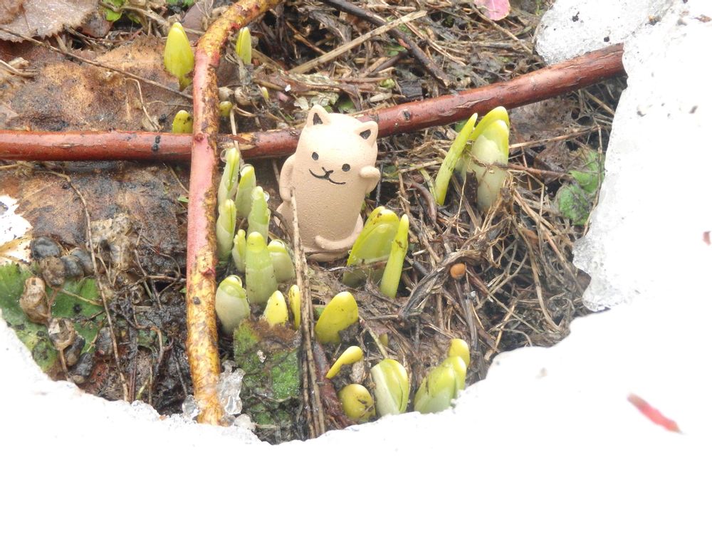 家側の、お庭の中でも雪が一番早く溶ける場所です。