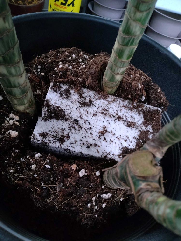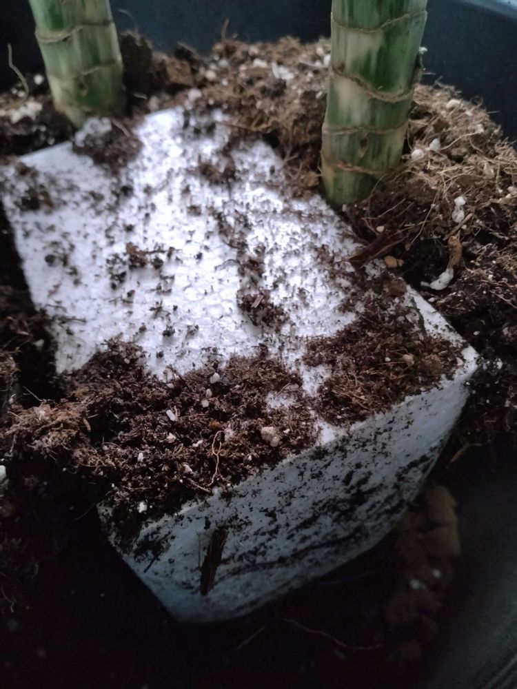 この後すぐに植え替えるが、土の中からビエネッタくらいのサイズの発泡スチロール。