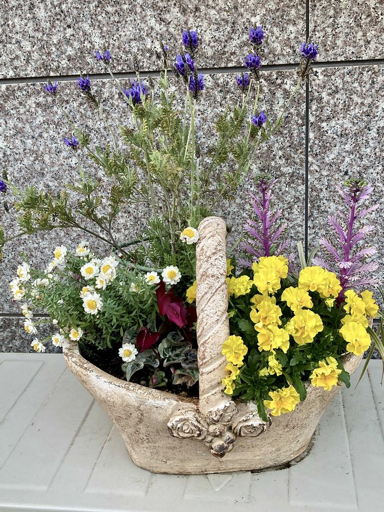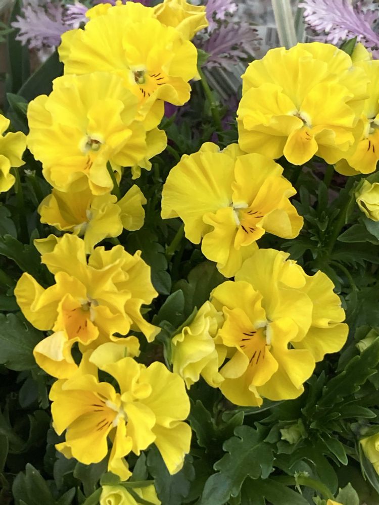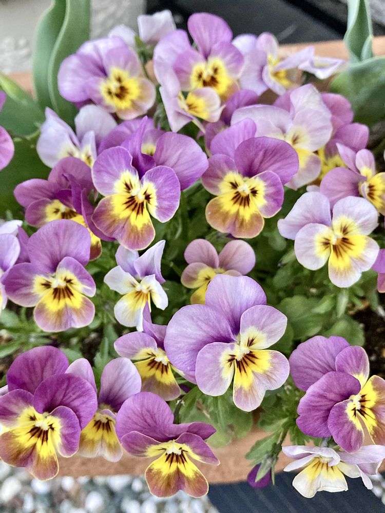 ①寄せ植えの中のヒラヒラのビオラ、可愛い💕名前があった様な🤔