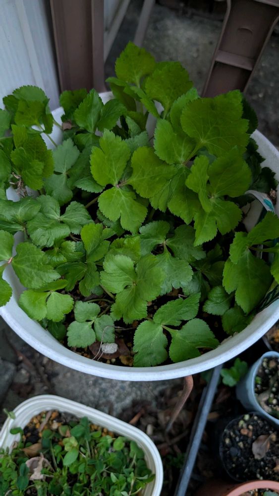 この鉢の三つ葉は、去年生えて今年で2年目です。