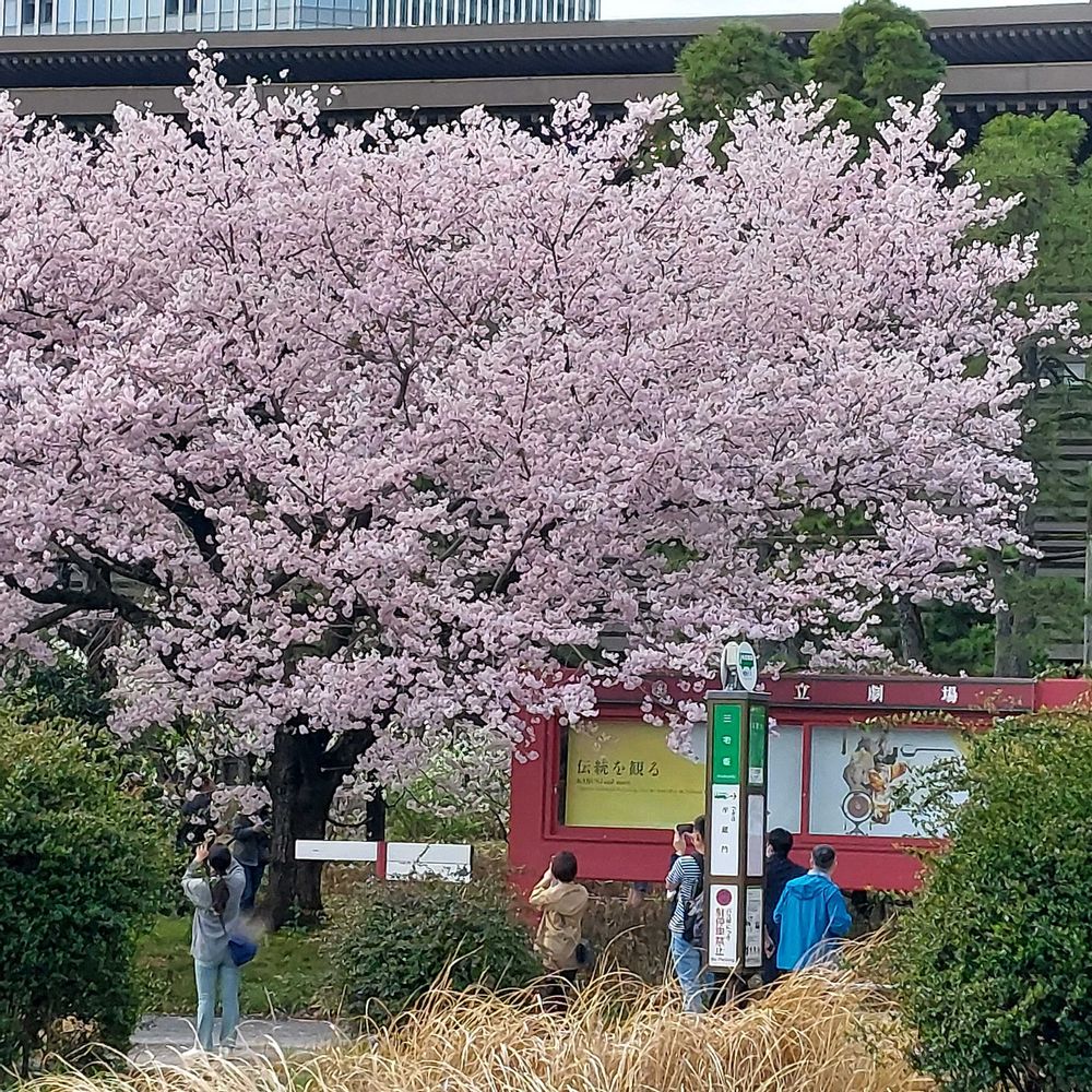 国立劇場前のピンクの桜も満開🌸🩷