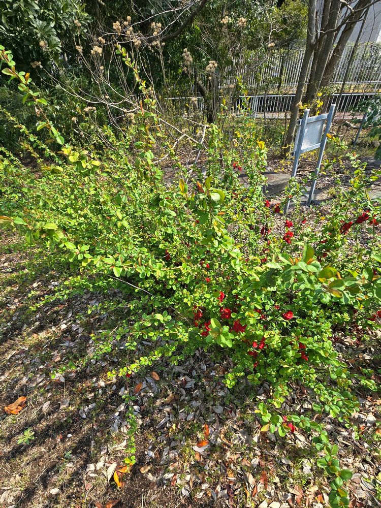 春にここに来た時に撮る草木瓜の花、真っ赤な花で綺麗です。