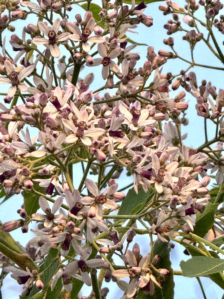 島の続き🏝️ 大きな木の枝にサワサワと薄紫のお花が揺れてます〜