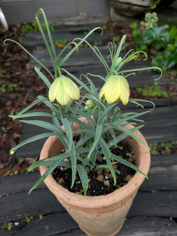 日本に自生する清楚な球根植物。年末に購入した球根の福袋に入っていました。1月18日に植えてから、皆さんの貝母百合の投稿を見て開花を楽しみにしていました💓