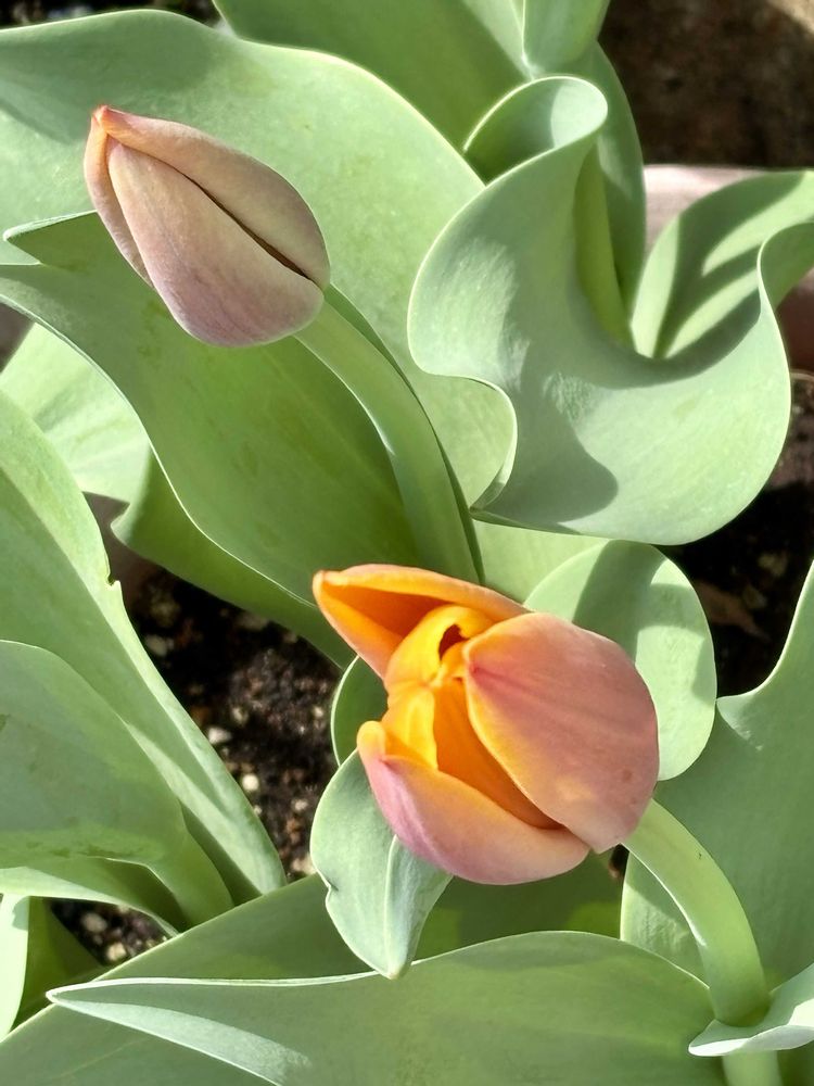 昨日「チューリップ第一号が咲いてるよ」と夫が教えてくれました♪
