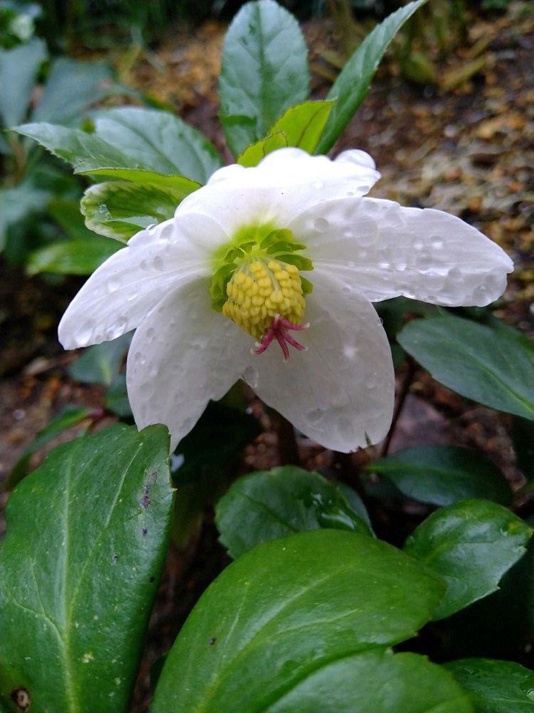 純白のクリスマスローズ、雨粒をまとうと清らかさが増々✨✨✨✨😊