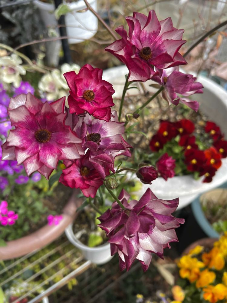 今咲いているラナンキュラスラックス4種です。昨日撮りました🤳②③は2年目、3年目の5種はもうすぐです🎶